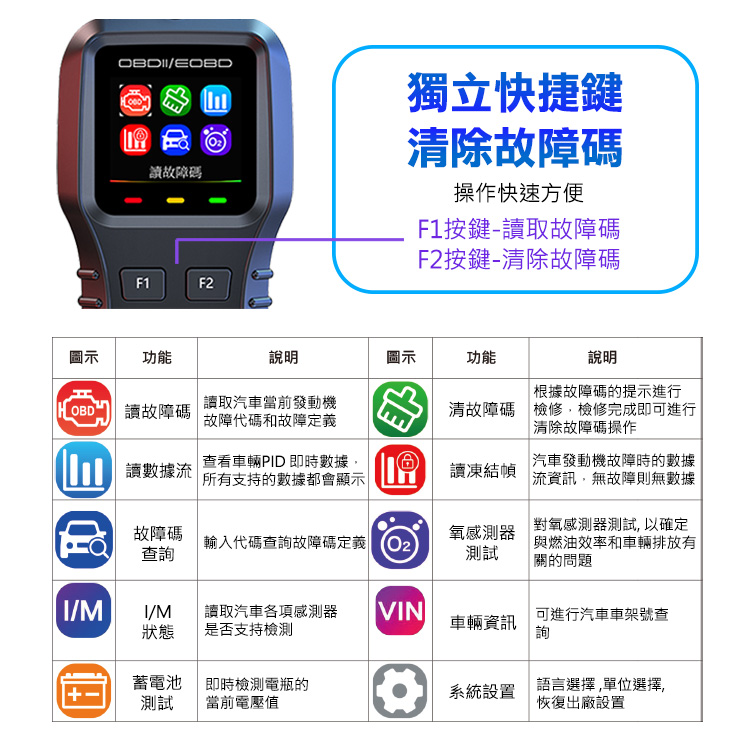 ※ 適用於OBDII和EOBD介面,不支持OBD I 和JOBD。