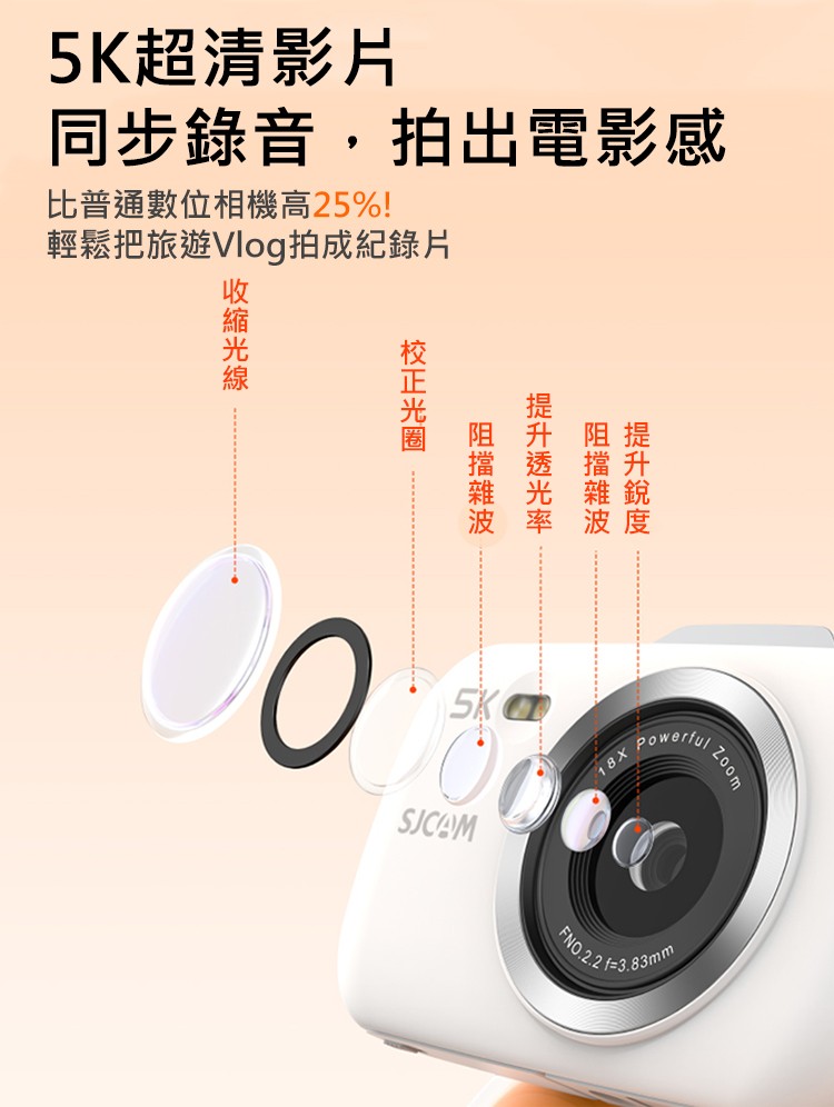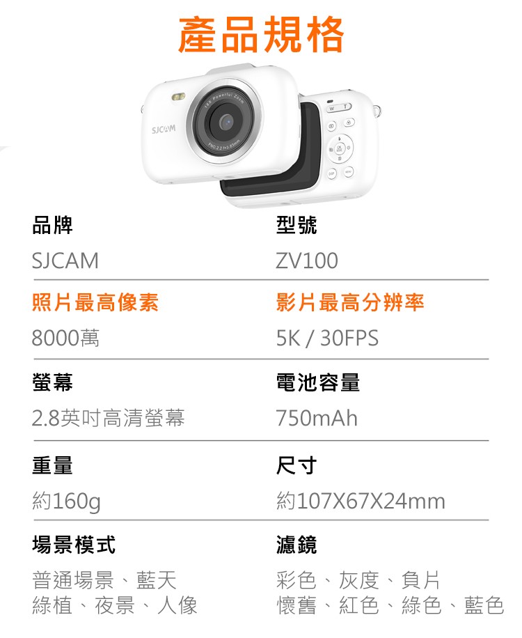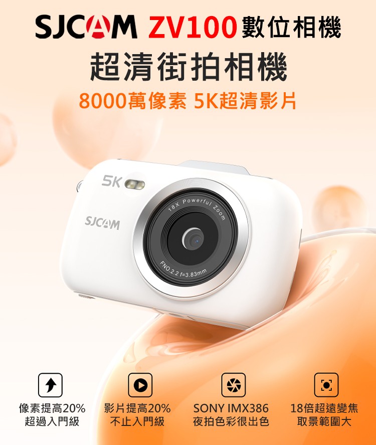 FLYone SJCAM ZV100 5K高清 8000萬畫素 變焦 數位相機 學生相機
