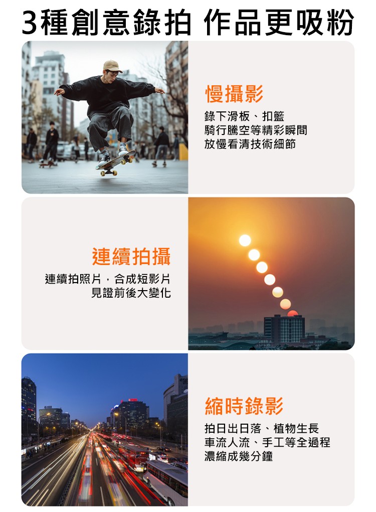 • 自動連拍,掌握美好瞬間
