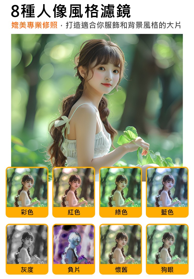• 多種人像氛圍濾鏡