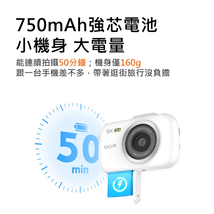 • 750mAh強芯電池,連續拍攝50分鐘